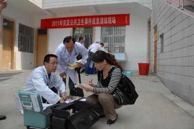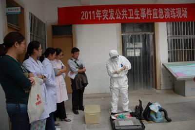 为检验我市突发公共卫生事件的卫生应急处置能力,进一步提高我市预防和处置各类突发公共卫生事件的能力和水平,规范突发公共卫生事件应急处理程序,完善对突发公共卫生事件应急处理工作的技术支持、信息管理和物质储备,市卫生局、市疾控中心于2011年9月27日,组织有关专家对各县(市)、区开展了突发公共卫生事件应急处置演练。