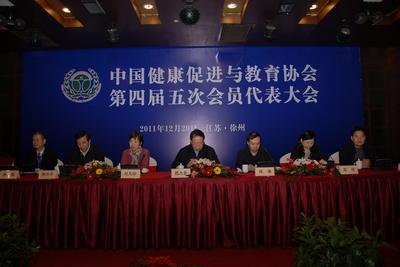 中国健康促进与教育协会第四届五次会员代表大会于2011年12月20日-21日在徐州市召开。协会会长、前卫生部副部长殷大奎、副会长刘克玲、李枫、江苏省健康教育协会会长、省卫生厅原厅长郭兴华、卫生部妇社司健康教育处处长石琦、徐州市人民政府副市长段雄、徐州市卫生局局长吴宪等领导出席了会议。协会领导及来自全国的常务理事、理事、会员代表等共96人参加了会议。