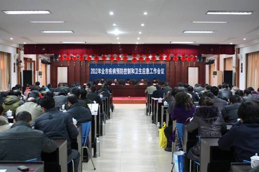 市卫生局胡局长发表讲话并部署2012年工作,指出2012年全市疾病预防控制工作要始终坚持预防为主的工作方针,进一步强化政府职责和投入,完善疾病预防控制体系建设,全面落实重大传染病、慢性病、地方病、精神疾病预防控制措施和国家免疫规划策略,大力推进卫生防病健康教育,提高公共卫生服务能力和水平,促进疾病预防控制事业全面、协调、可持续发展,维护群众健康权益和社会稳定。全市卫生应急工作要以突发公共卫生事件防控和其他突发事件医疗卫生救援为重点,进一步加强卫生应急工作的“一案三制”建设,加快推进卫生应急决策与指挥系统建设,加强卫生应急培训演练和信息报送管理,不断提升卫生应急反应速度、准备水平和处置能力。