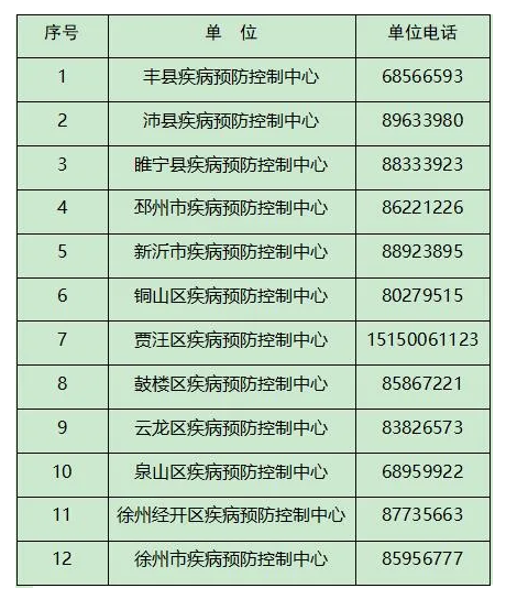 徐州市各县(市)、区疾病预防控制机构联系方式
