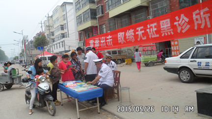2015年5月26日—27日,沛县卫生监督所在城区、乡镇、农村开展了近20次打击非法行医巡回宣传,呼吁广大人民群众自觉抵制非法行医活动。通过悬挂横幅标语,展出宣传画板、发放宣传单、设立咨询台等形式,向群众宣传非法行医、非法医疗美容的危害性和打击非法行医的迫切性和重要性,提醒广大人民群众,就医要到正规医疗机构,并鼓励广大群众对非法行医进行投诉举报,此次巡回性宣传活动共接受群众咨询近4000余人次,发放宣传单1万余份;同时在集贸市场、村委会、医院张贴打击非法行医的宣传画报,公布了举报电话,形成了良好的社会监督氛围。打击非法行医,需要全社会的共同参与。只要广大群众擦亮眼睛,远离“黑诊所”、“假医生”和“医托”,非法行医就就会失去赖以生存的土壤,安全、和谐的就医环境就能得到进一步提升。下一步,沛县卫生监督所将充分利用此次系列宣传活动形成的良好氛围,继续深入开展打击非法行医活动,进一步净化我县医疗服务市场,切实保障人民群众的就医安全。