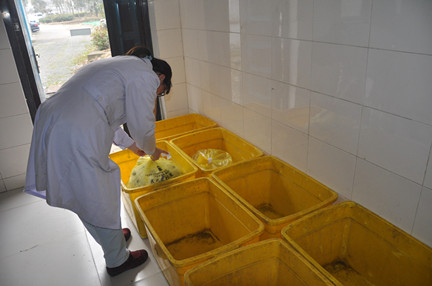 截止到1月24日,铜山区卫计委卫生监督所共检查三级医院、二级医院、一级医院、卫生院、社区卫生服务中心(站)和其他医疗卫生机构等各类医疗单位88户。通过第一次的专项检查整改后,本辖区各家医疗单位的医疗废弃物回收情况有了进一步改善,但仍然暴露了一些不足之处,如医疗废物登记交接不明确、无专用利器盒等。