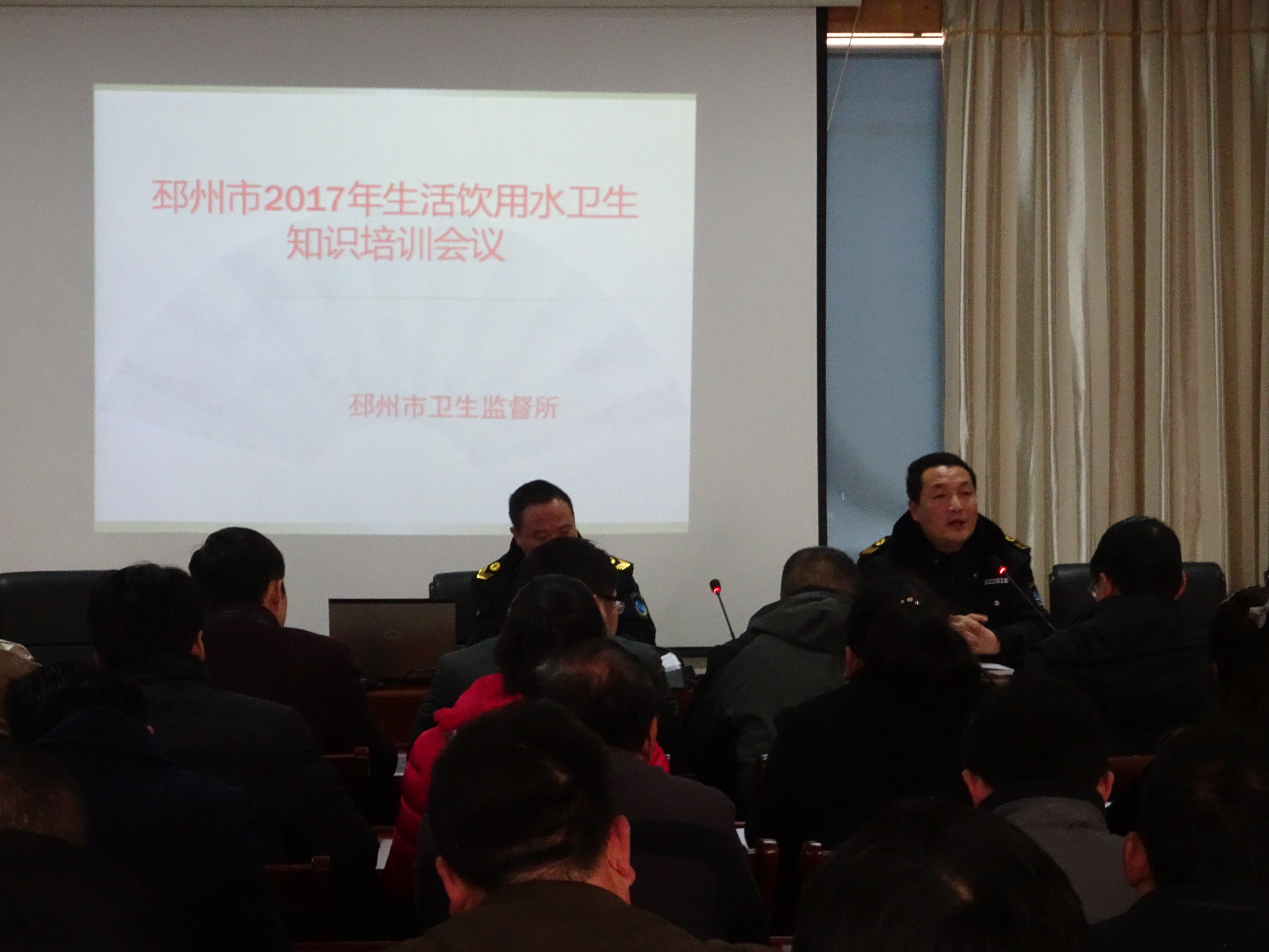 为进一步加强邳州市生活饮用水卫生管理,保障全市人民生活饮用水卫生安全,依据《生活饮用水卫生监督管理办法》相关规定,结合市创建国家级卫生城市的要求。邳州市卫生监督所于2月17日上午在市卫生监督所五楼会议室召开了全市生活饮用水卫生知识培训会。集中式供水、二次供水、现制现售直饮水等单位负责人、管供水人员共138人参加了会议。