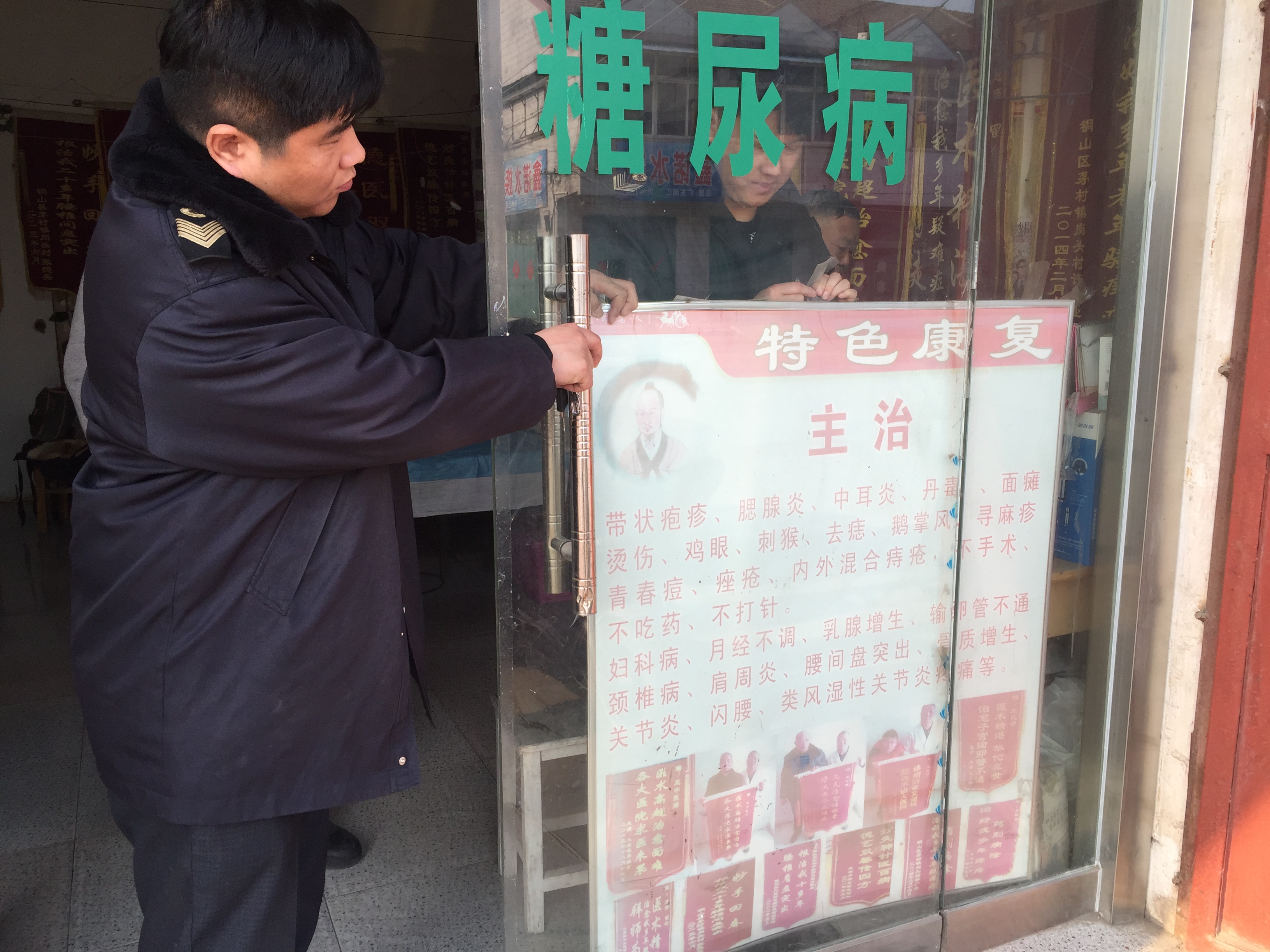 为进一步整顿医疗服务市场,规范医疗执业行为。为创建文明城市保驾护航。近日,开发区卫生监督所在全区开展打击非法行医专项行动,重点打击没有取得《医疗机构执业许可证》擅自开展诊疗活动的“黑诊所”和超出执业登记许可范围开展诊疗活动的行为;严肃查处没有任何行医资格的游医、假医和医疗机构聘用非卫生技术人员行医等违法行为。此次行动共检查医疗机构26户,取缔“黑诊所”4户,立案查处4户,当场收缴药品23盒,没收医疗器械6件。