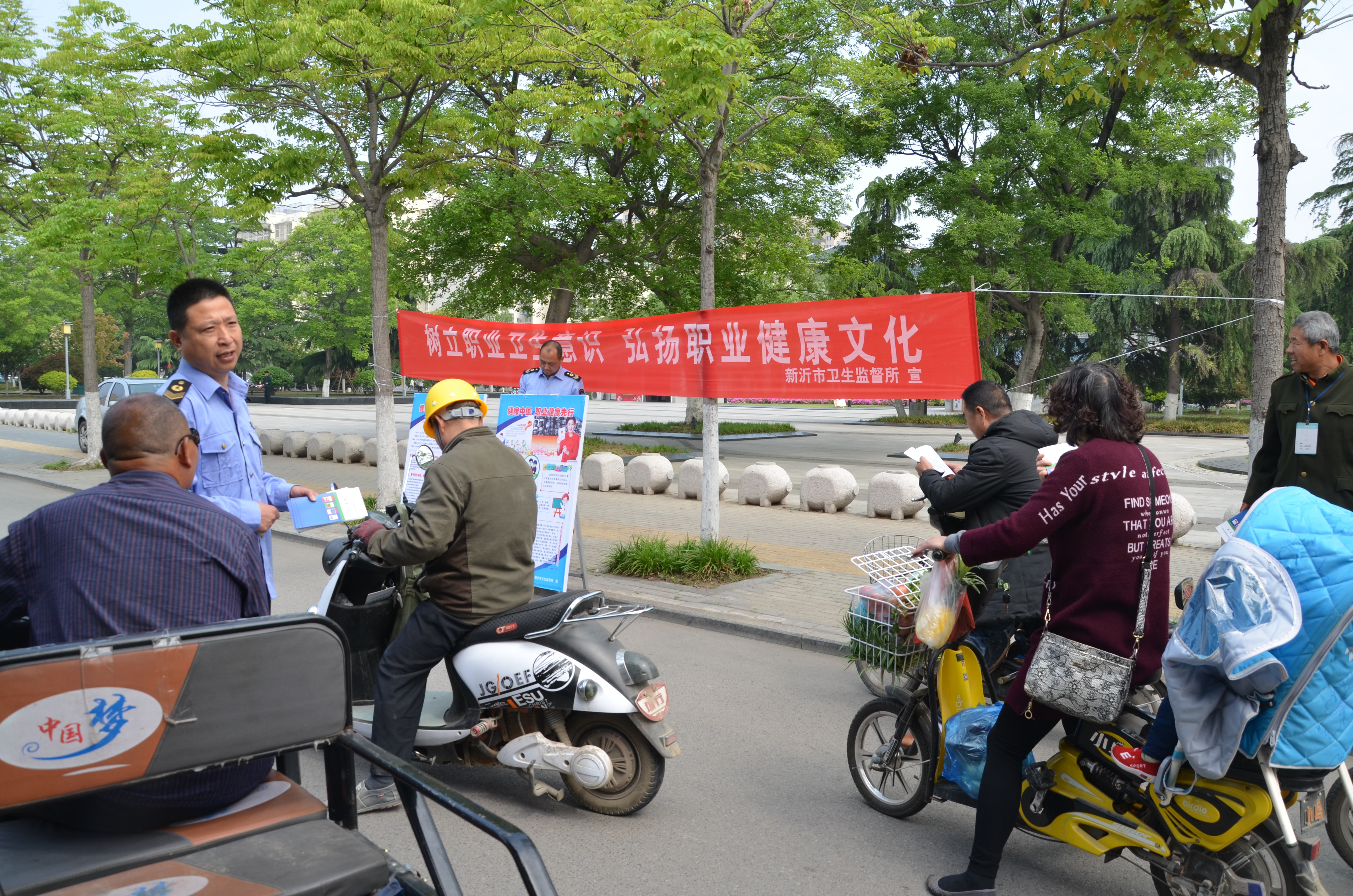 2018年4月25日至5月1日是第16个《职业病防治法》宣传周,本次宣传主题是“健康中国,职业健康先行”。为深入宣传贯彻《职业病防治法》,进一步普及职业病防治知识,提高劳动者自我防护的意识和能力,切实保护广大劳动者的职业健康权益,2018年4月26日,新沂市卫生监督所人员在我市花厅文化广场开展以“树立职业卫生意识,弘扬职业健康文化”为主题的《职业病防治法》宣传活动。