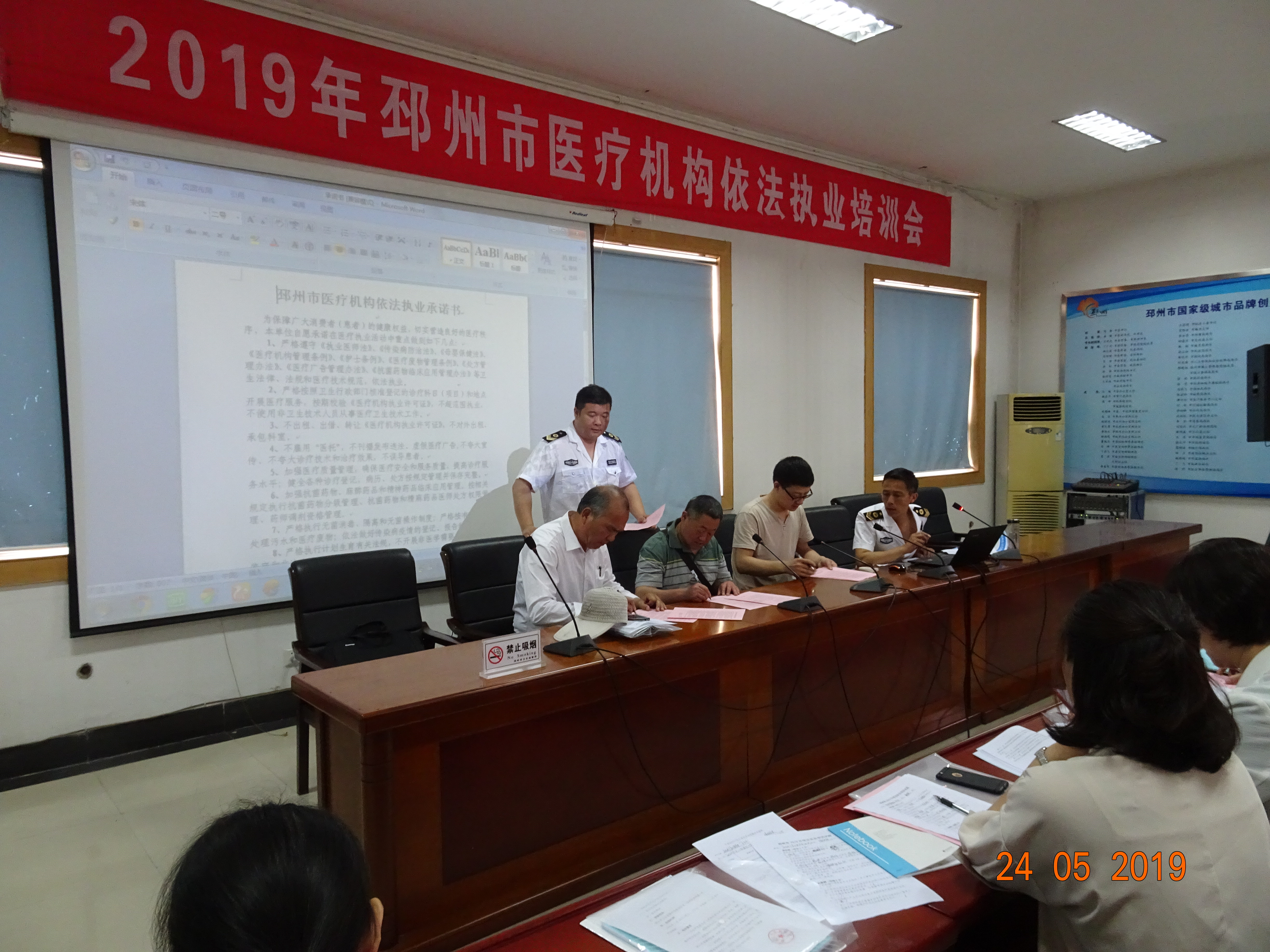 为进一步提高邳州市医疗机构依法执业水平,强化法制意识和行业自律,切实维护正常医疗秩序,依法履行监管职责,邳州市卫生监督所于5月24日召开了2019年医疗机构依法执业培训会议。市直公立医院、民营(企业)医院、乡镇卫生院(社区卫生服务中心)、个体诊所等各级医疗机构的分管领导或相关负责人共计130余人参加了本次培训。