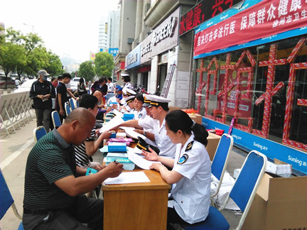 二是面对面引导群众安全就医。2015年5月22日,徐州市卫生监督所在欧洲商城广场开展了主题为“打击非法行医,你我共行动”的宣传活动,印制了非法行医方式、医疗美容、医托、非法代孕等方面的科普知识宣传材料。通过悬挂宣传横幅、展出宣传画板、发放宣传单、设立咨询点和发放相关知识调查问卷等方式向群众进行现场宣传,现场发放宣传材料2000余份。活动吸引了大量群众前来参与,卫生监督员也耐心细致地向前来咨询的群众讲解了非法行医、非法医疗美容的危害性,指导大家如何正确安全就医,起到了良好的宣传效果。