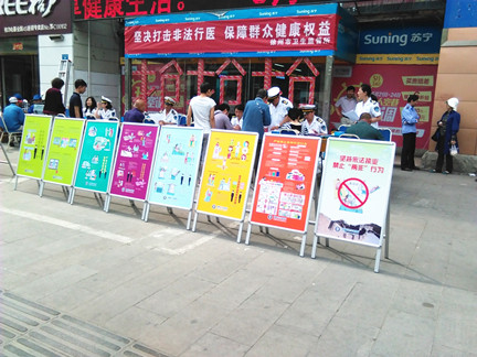 为进一步净化医疗市场秩序,提高群众辨识非法行医能力,引导安全就医行为,营造全社会抵制无证行医的良好舆论氛围,徐州市卫生监督所近期采取多种形式开展了打击非法行医宣传活动。