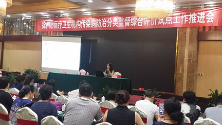 会议由市卫生监督所监督二处李桂荣处长主持,市卫生监督所分管副所长陈勇到会并做了重要讲话。在会上,省所张处长详细讲解了医疗卫生机构传染病防治分类监督综合评价试点工作方案和工作手册。李桂荣处长对全市传染病防治分类监督综合评价试点工作进行了部署,并宣贯了相关卫生法律、法规。会后,各参会单位纷纷就医疗机构在该项工作中该如何做与省所专家进行了沟通和交流。