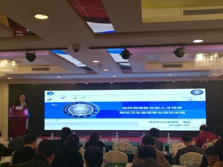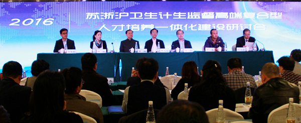 11月1日至3日,由江苏省卫生监督所主办的2016年苏浙沪卫生监督机构高端复合型人才培养一体化建设研讨会在南京顺利召开。国家卫生计生委卫生和计划生育监督中心、江苏省卫生计生委相关领导及苏浙沪三地省级、地市级卫生计生监督所负责人、三地联盟合作医学院校相关负责人共100余人参加了此次会议。徐州市卫生监督所所长杨晶同志参会并就我所人才培养情况作了汇报讲话。