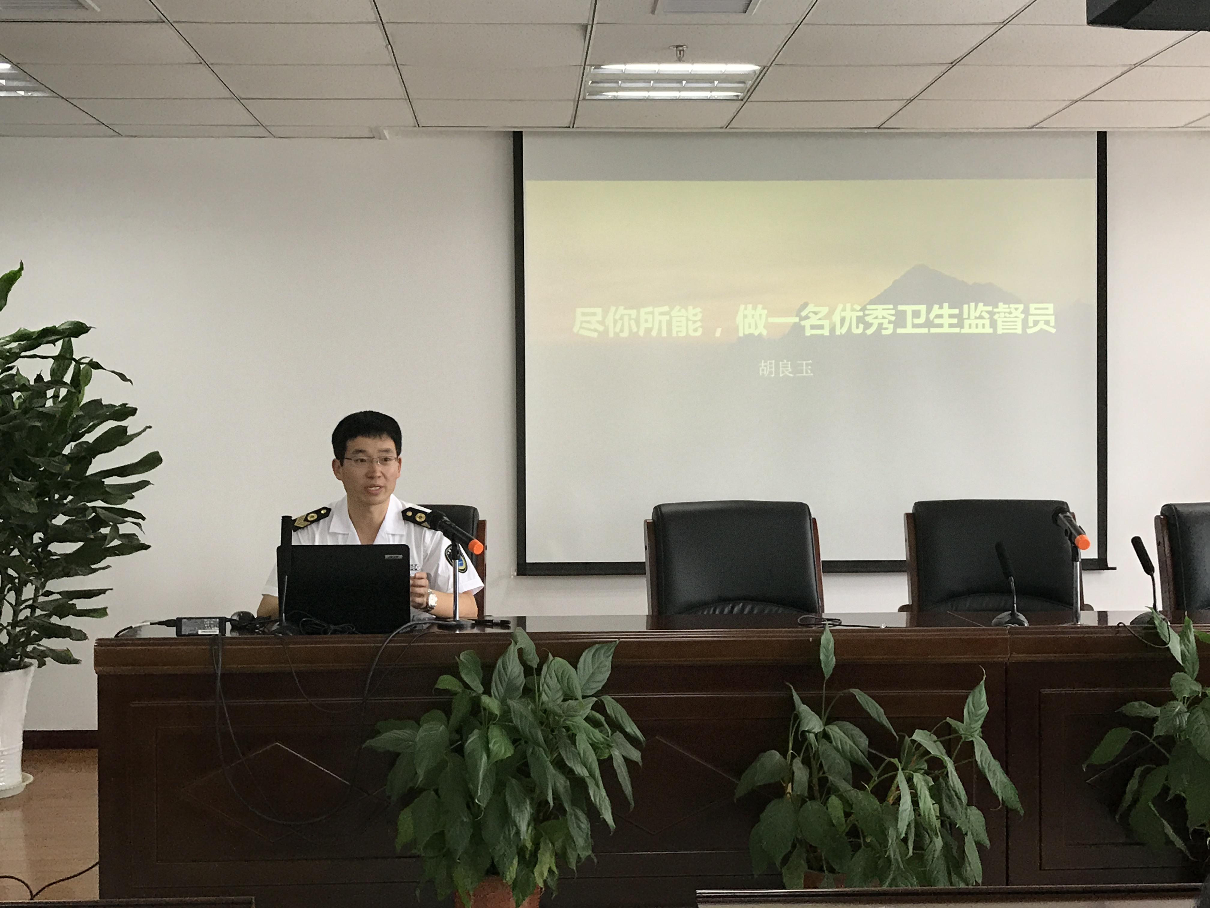 徐州市卫生监督所所长胡良玉以“尽你所能,做一名优秀卫生监督员”为主题诠释了职业道德的内涵。他从王明阳,梵高,俞敏洪,比尔盖茨,到扬州市卫生监督所朱宏伸考上浙工大等一个个具体生动的事例讲述了优秀和成功的区别。优秀可以把握,优秀的人,总有闪光点。要客观看待现在工作,增强主动意识和团队意识,扎扎实实,提高运用信息化手段和整体执法的能力。鼓励我们成就自己,做好的自己。提出必须目标明确,在内心形成超强的执行力,想尽办法,竭尽所能,永不放弃,同时正确心态,完善和提高。要做发光的监督员,做卫生监督的创造者和参与者。