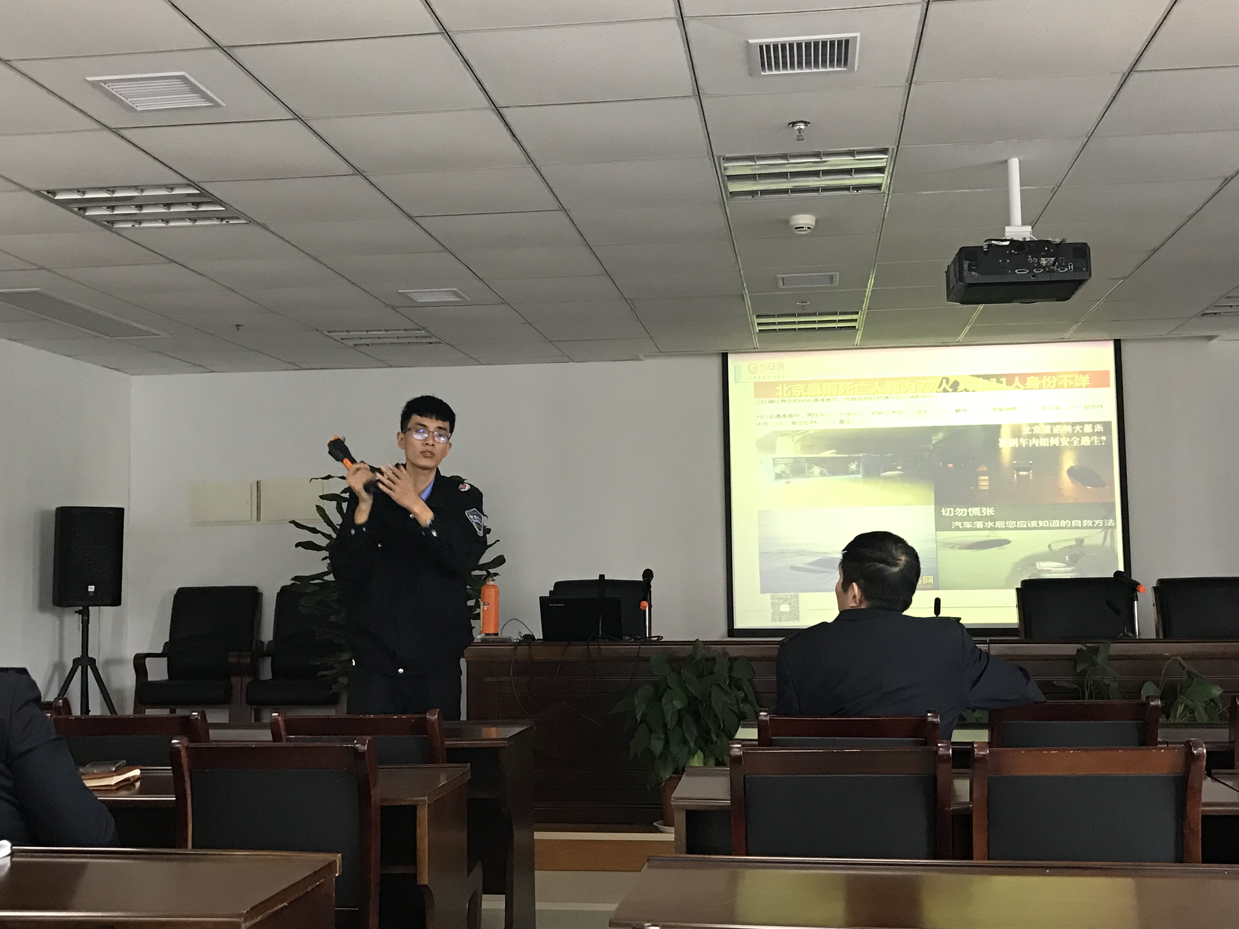 本次培训由徐州市安居防火张宇教官主讲,以“消除火灾隐患,共建平安单位”为主题,意在提升职工关注消防、参与消防的积极性,强化职工消防安全意识,提高火灾自防自救能力。通过播放几起近期火灾案例,详细讲解了如何防范各类火灾隐患以及各类安全事故的紧急处理、逃生等系列问题;并实地讲解演示了灭火器、室内消防栓的操作方法。