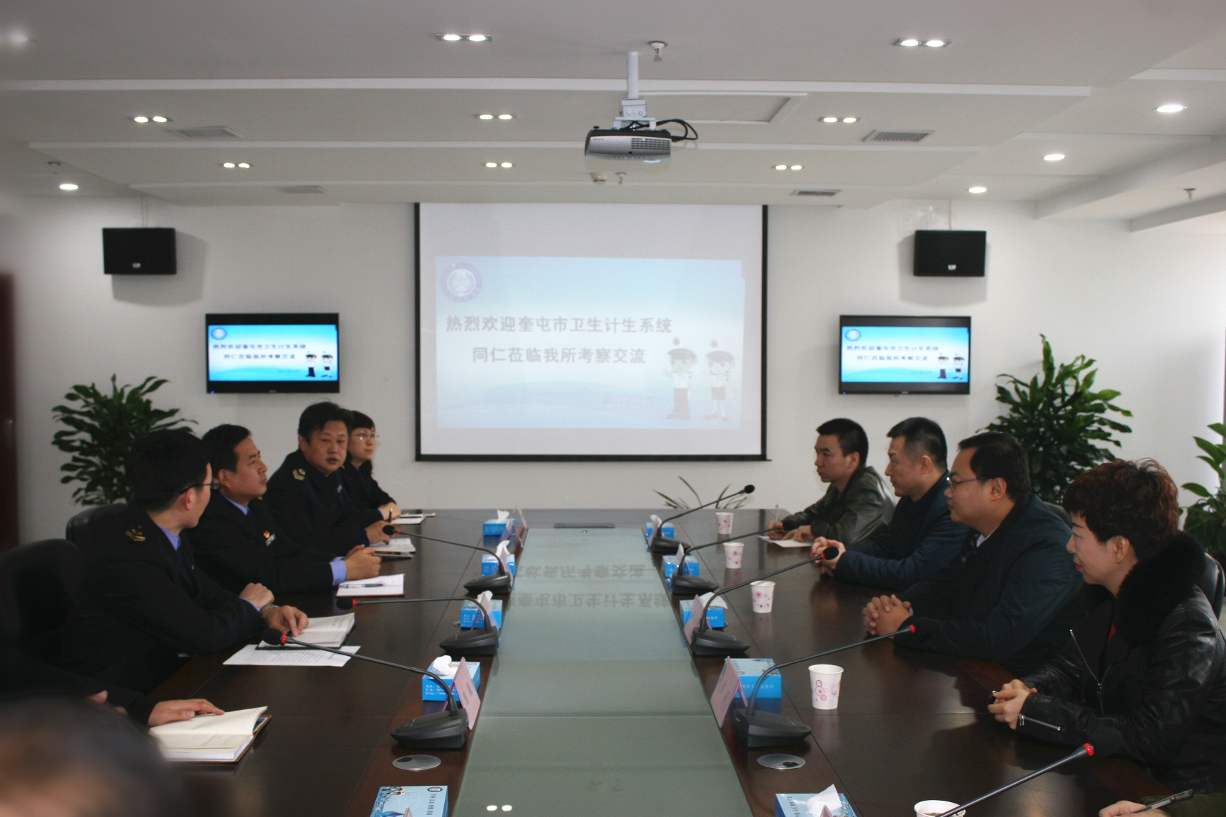 在座谈会上,胡良玉所长首先代表全所对奎屯市卫生计生系统一行表示热烈的欢迎,并简要介绍了我所队伍建设、信息化建设、业务工作开展等基本情况,希望双方以此次交流活动为契机,进一步增进互相了解,实现更多合作。季培琛、陈丽一行对我市卫生监督工作取得的成绩给予了高度评价,并表示此次考察开阔了视野,拓宽了思路,对推进奎屯市卫生监督工作具有很大的启发作用,希望进一步加强交流与沟通,不断增进友谊,实现优势互补。代表团一行还现场参观了市卫生监督所办公场所、廉政文化室、快速检测室、调查询问室等基础建设,并和市卫生监督所相关处室负责人进行了业务交流。