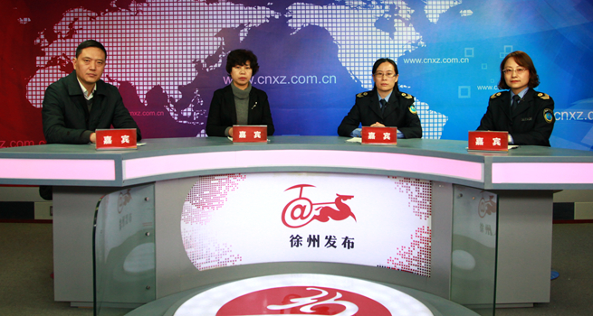 1月11日,徐州市严厉打击非法医疗美容专项行动 新闻发布会在徐州广电《徐州发布》栏目召开。发布会参加人员有市卫生计生委副主任尹葆华、综合监督处处长王凯、市卫生监督所副所长周丽玲、监督四处处长夏静。发布会由王凯处长主持。