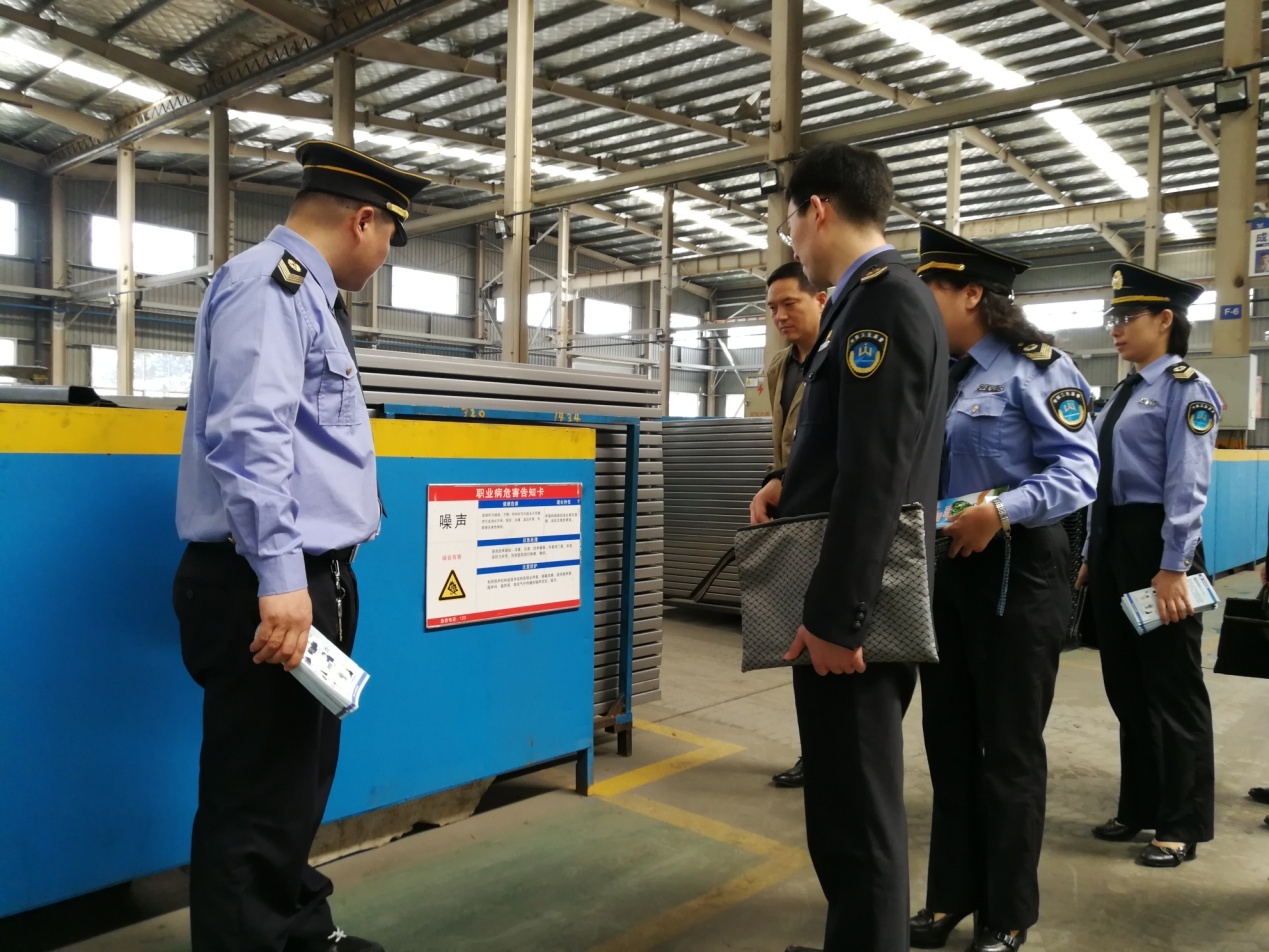 走进企业、送法上门。在所长胡良玉同志的带领下,卫生监督员深入淮海宗申产业园车间,现场查看一线劳动者的职业卫生防护情况。随后与企业员工展开互动交流,并召开座谈会。在会上,胡所长提出三点建议。一是管理者要把员工的培训、教育、健康知识放在重要位置。二是要加强装备、硬件、健康、先进性投入,强化流程设计,增设警示标识。三是要管理规范,把职业健康融入对管理制度的落实上、把职业防护融入日常工作中,这样才能把职业健康真正做好,走在全国先进行列中。