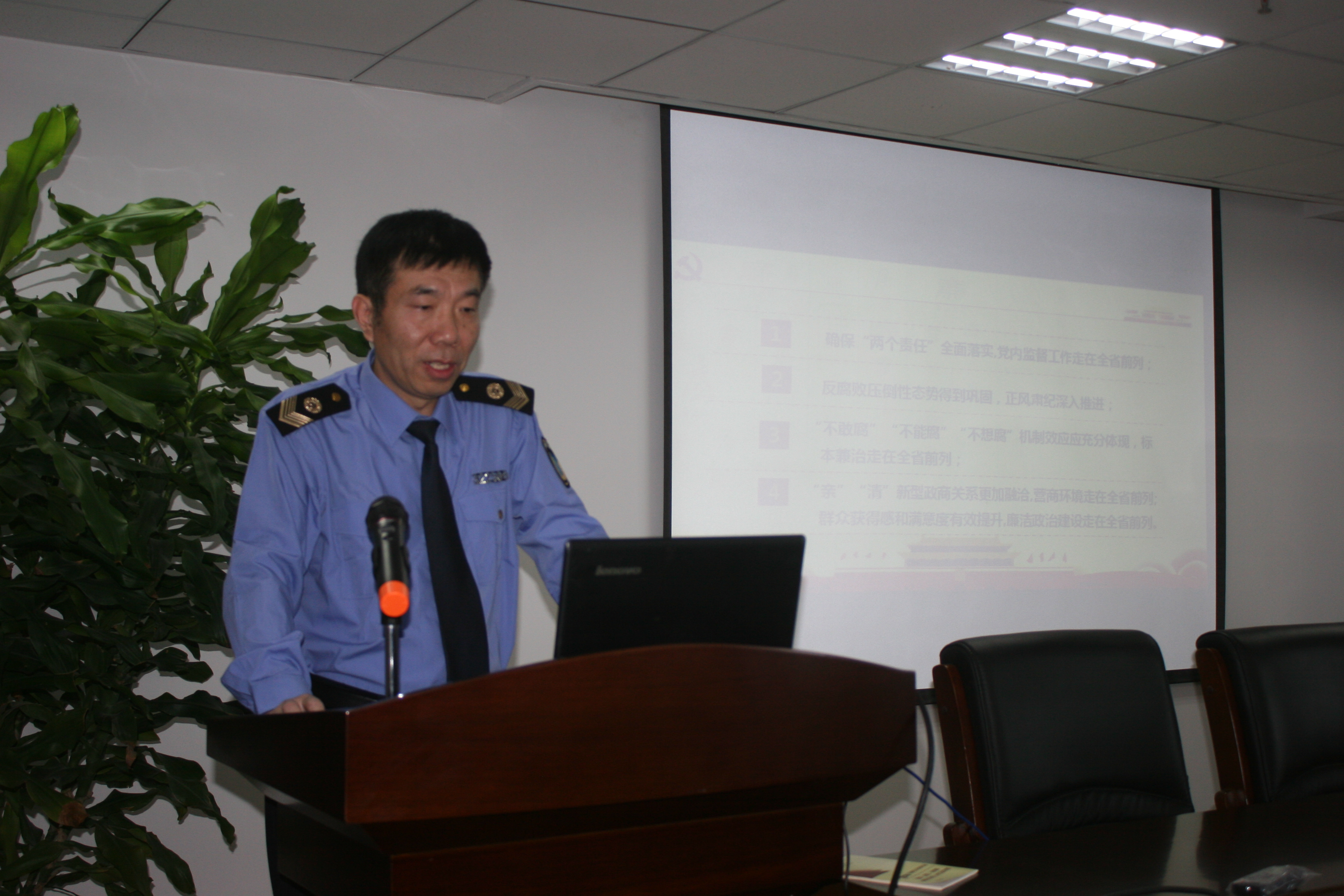为深入贯彻落实党的十九大关于全面从严治党的战略部署,进一步压实全面从严治党主体责任,为卫生监督事业营造风清气正的政治生态,根据市纪委监委《关于印发<关于在市级机关部门党委(党组)开展压实全面从严治党主体责任“六个一”专题监督活动的实施方案>的通知》文件精神,10月31日上午,市卫生监督所党总支书记宋强以《推进廉洁政治“三清示范区”建设 为卫生监督事业营造风清气正政治生态》为主题,为全所干部职工上了一堂生动的党课。市纪委监委第三纪检监察室张明珠同志莅临指导。