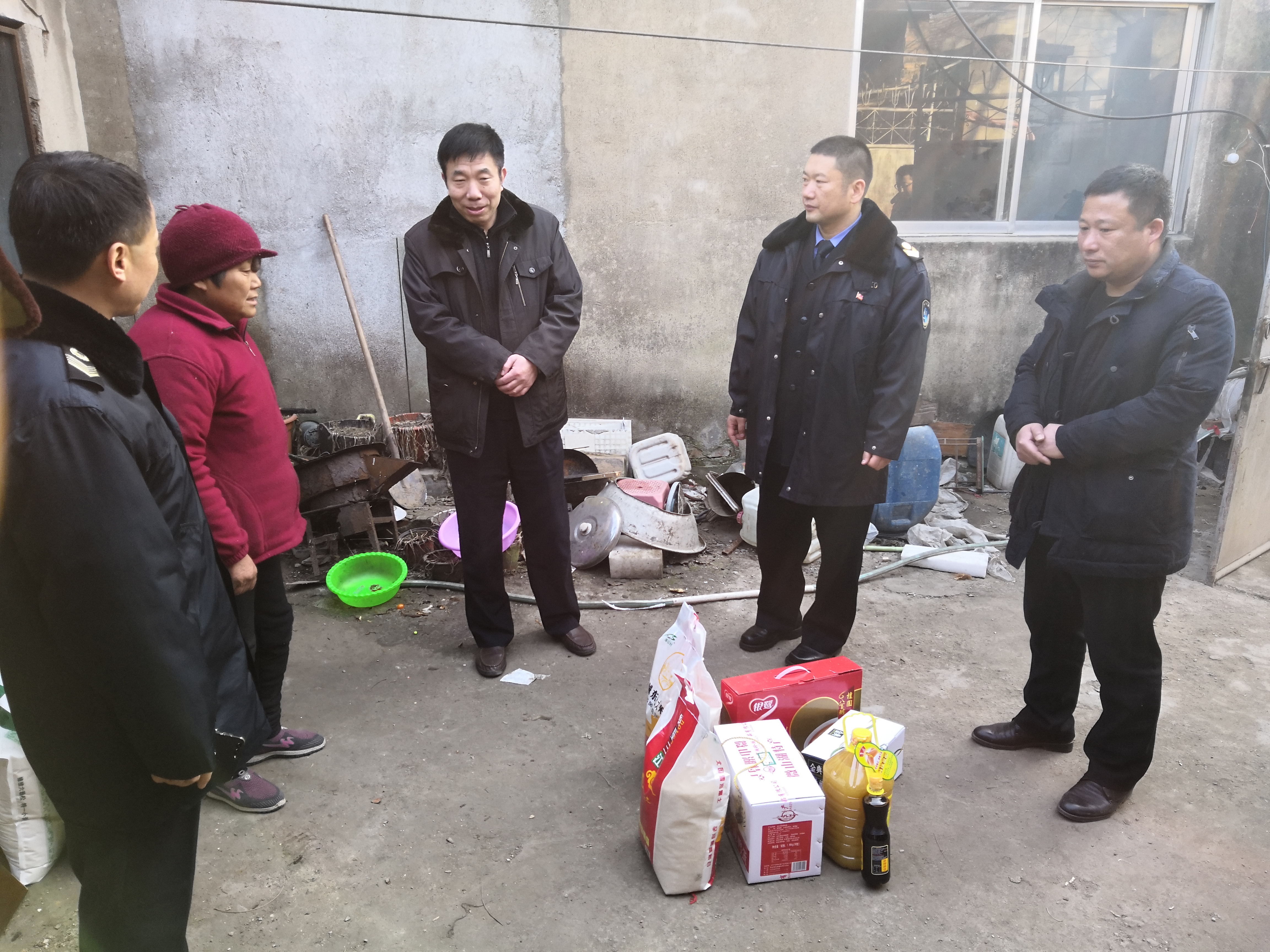 在新春佳节即将来临之际,为了让结对帮扶村困难群众过上一个幸福祥和的春节,1月23日下午,徐州市卫生监督所党总支书记宋强同志带领慰问小组到云龙区大龙湖街道大韩村开展节前走访慰问活动。云龙区卫生监督所所长、驻大韩村第一书记李东同志带领云龙区卫生监督所慰问小组一同参加了慰问活动。在村党支部吴书记的陪同下,慰问小组为10余户困难家庭送去米、面、油等生活必需品,并与他们亲切交谈,详细了解他们的生活状况和现实困难,给他们送上新春的美好祝愿,鼓励他们树立生活信心、保持乐观心态、勇敢面对逆境,在党和政府的带领下早日实现脱贫。