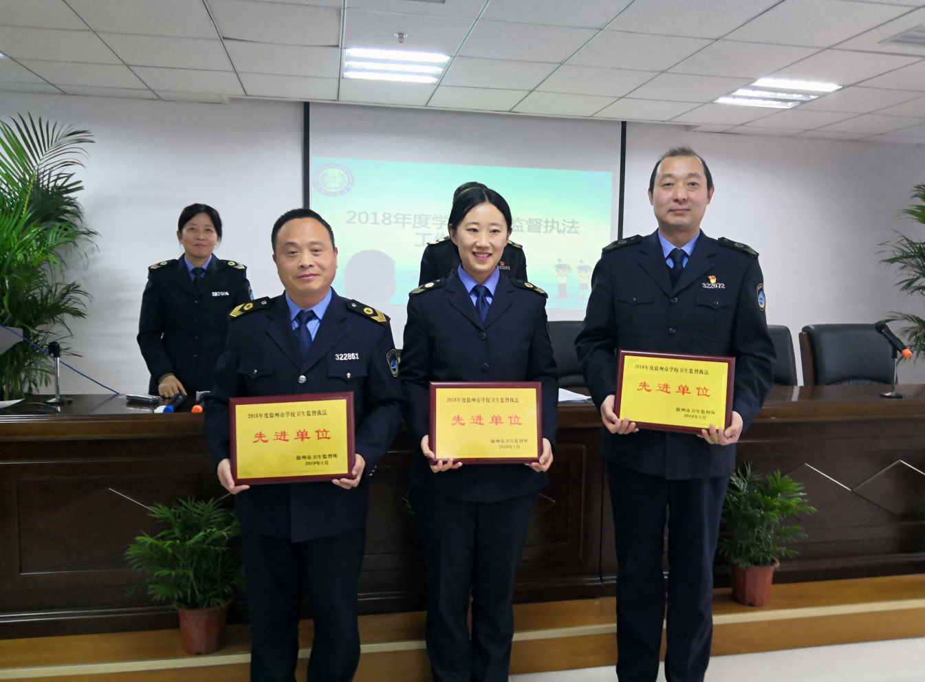 会议的内容,首先是由市卫生监督所陈勇副所长,介绍了2018年度学校卫生监督执法总结和表彰工作的筹办依据、目的和意义,以及整个卫生监督工作面临的一些问题,希望学校卫生监督这个开展年度表彰的单项工作,能通过总结和表彰的形式,更有利于2019年度工作质量的提高。市所学校卫生牵头处室肖力处长,向会议宣读了《2018年学校卫生监督市所及各县区所工作情况汇总》,点评了各县区的学校卫生监督工作的特点和不足。邳州市所、泉山区所、丰县所等在会议上作了工作介绍,分享了工作体会和经验。 会上宣读了《关于表彰徐州市2018年度学校卫生监督执法工作先进单位和先进个人的决定》(徐卫监所【2019】5号)。本年度的总结表彰,和上年度类似,仍然是为了落实《学校卫生工作条例》有关表彰的工作激励措施而组织实施的。全市的工作总结,是在各县区年中总结、年底报表和年终总结的基础上形成的。先进单位和先进个人,是在综合上述资料和各所的监督案例、监督事例以及单项活动的特色等因素的基础上产生的。表彰决定对邳州市卫生监督所等3个监督所授予“先进单位”称呼,对曹恋秋、周少杰等6名学校卫生监督员,授予“先进个人”称号,并颁发了奖牌和奖状。