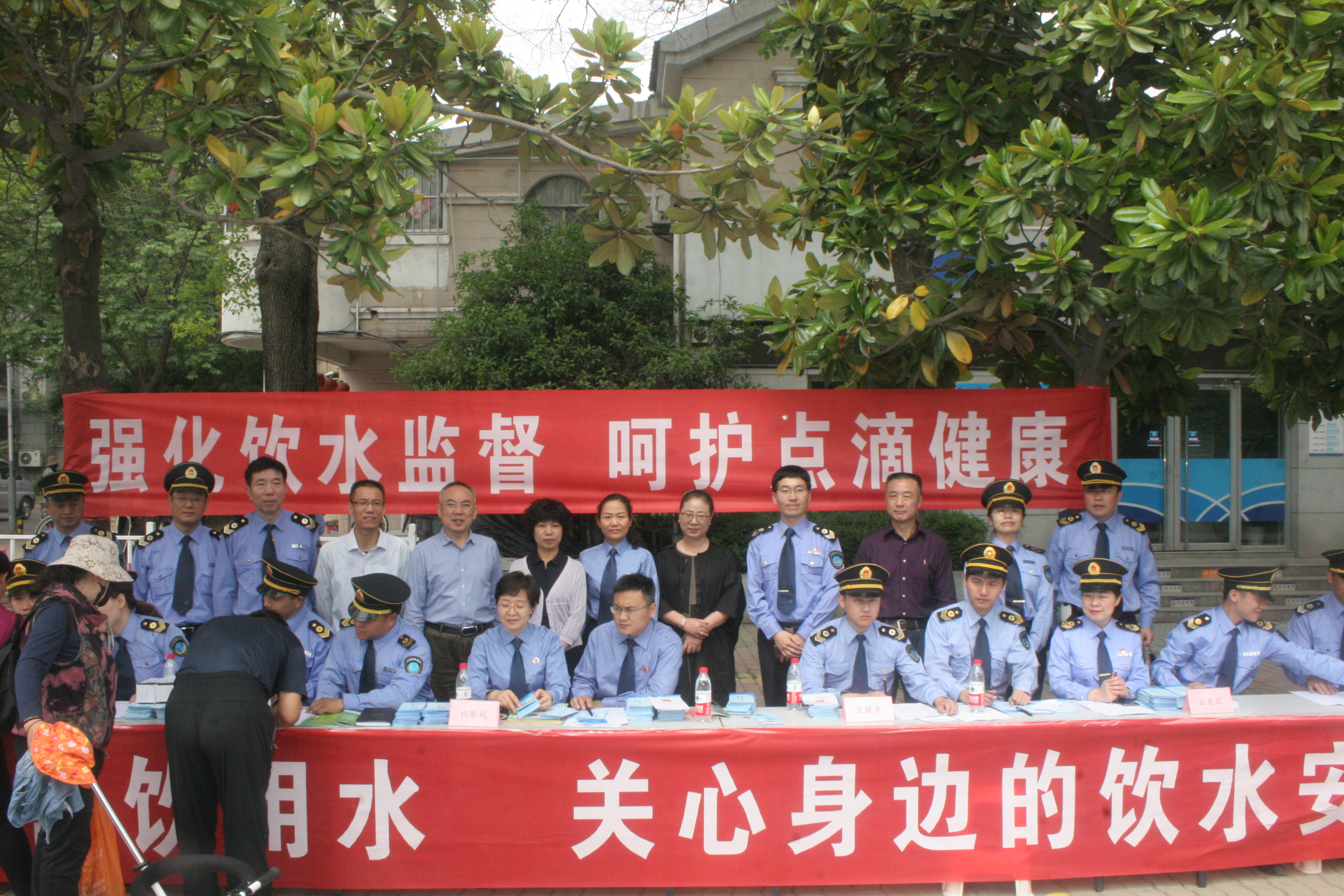 近年来,大街小巷、小区内的自动售水机已是司空见惯,“水质是否合格”“供水设备是否符合要求”“供水出现异常情况该怎么办”已经成为广大市民的热点问题。每年5月第三周为全国饮用水卫生宣传周,为加强我市饮用水卫生监管,2019年5月16日上午,徐州市卫生健康委员会、徐州市卫生监督所联合市人大、市检察院、市司法局以及各区卫生监督所开展了以“关注现制现售饮用水,关心身边的饮水安全”为主题的宣传活动。