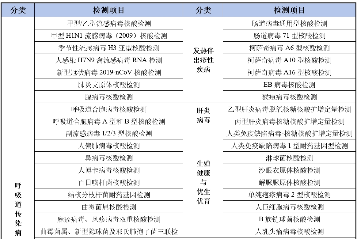 本实验室提供多种病原体的核酸检测,具体检测项目详见下表: