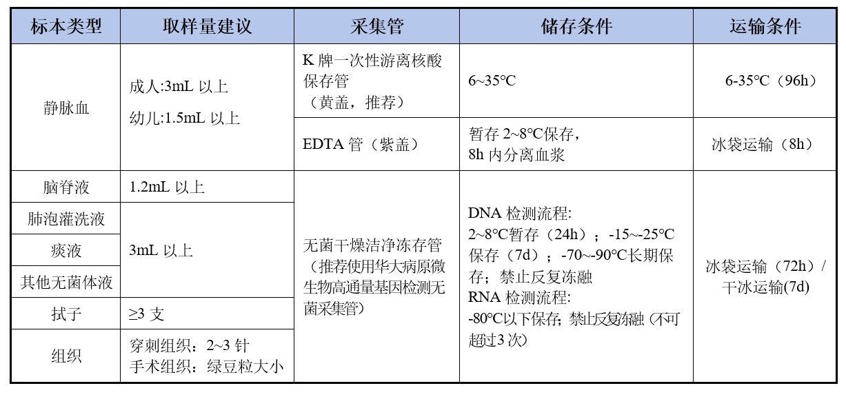 2. 样本采集、储存及运输要求