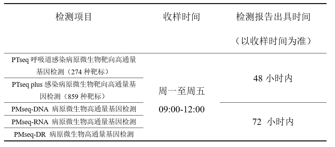 TM病原微生物高通量基因检测(mNGS)服务。具体检测项目详见下表:
